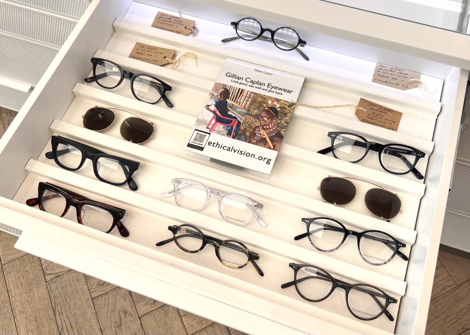 The charity is supported in several ways: Ethical Vision sells its own range of eyewear either online or in person at selected independent opticians, including here in our King’s Road practice.